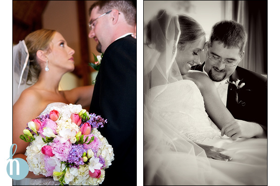 Both brides last weekend did something really cool. They wore veils for the ceremony and then switched to a large flower in their hair. Lindsey on Saturday had a beautiful, long veil while Amanda on Sunday wore a hip, birdcage veil.