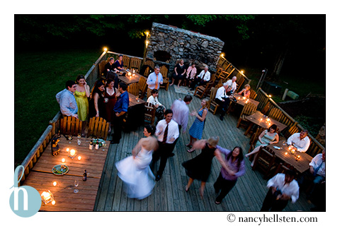 The Dancing Bear Lodge in Townsend. The ceremony was held in a smaller meeting hall with the reception in the larger lodge and formal photos around the grounds. The reception tables were set up indoors and out with a dance area on the lower deck.